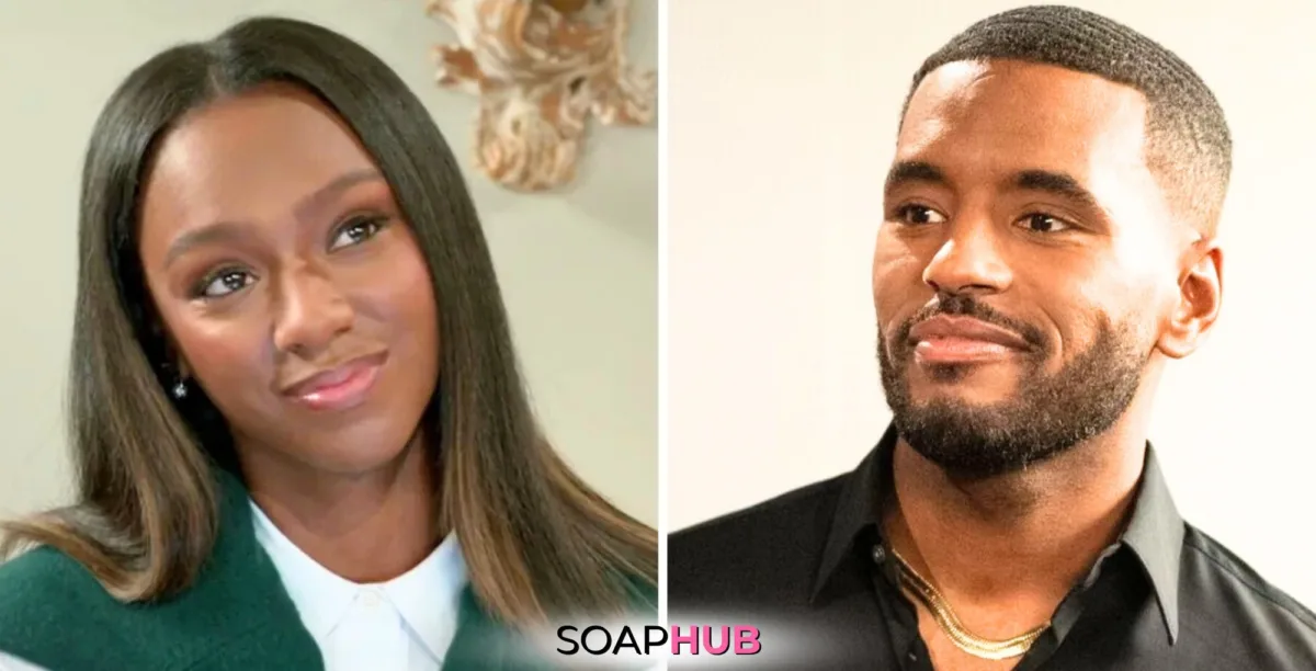 Beyond the Gates' Trisha Mann-Grant who plays Dana "Leslie" Thomas, with the Soap Hub logo.Trisha Mann-Grant.