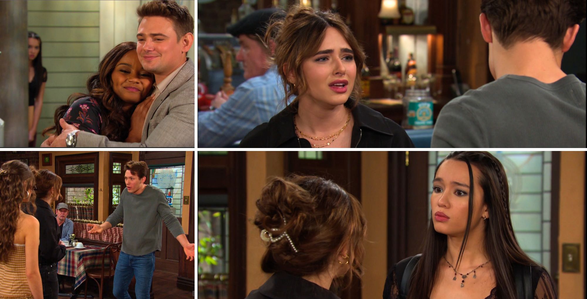 Sophia (Rachel Boyd) didn’t hook up with Tate (Leo Howard). Instead, he attempted to manipulate her emotions by kissing Sophia… all in an attempt to get her to spill about their baby. She even told Ari (Marissa Reyes) that nothing happened. But then, when Holly (Ashley Puzemis) confronted Sophia about it, Sophia made it seem like, yeah, maybe something did. Holly threw a tantrum, punched Tate in the nose, and then stomped out, breaking up with him, which was a very mature reaction. Sophia seemed pleased by her reaction. Also, she was dressed all in black today. In case we missed her new personality.