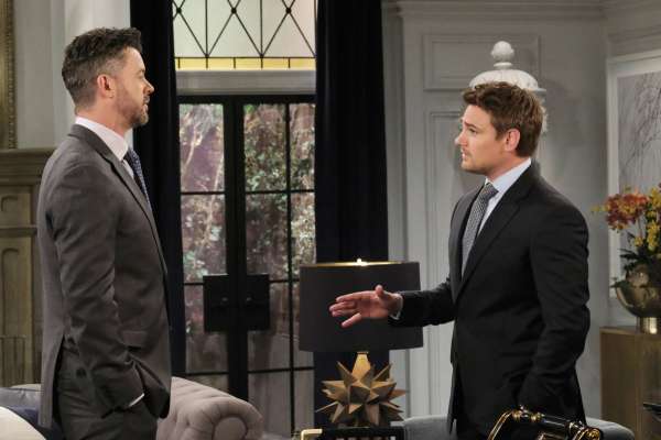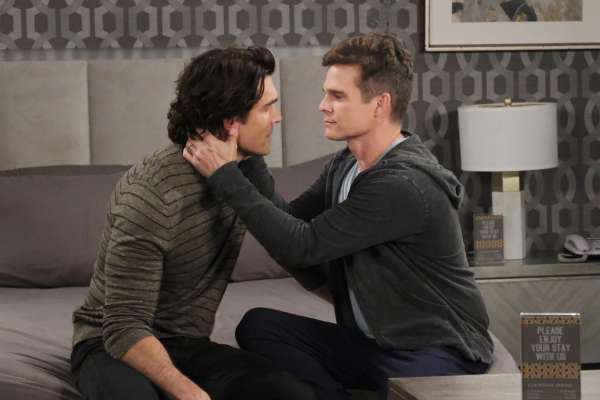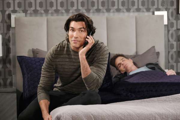 After Leo (Greg Rikaart) gives in to temptation, Dimitri (Peter Porte) has a call to make.