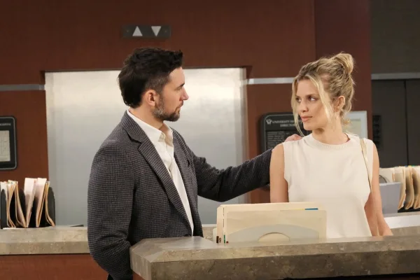 After their wild time stuck in the Salem University Hospital elevator, Chad (Billy Flynn) and Cat (AnnaLynne McCord) will get the all clear from Sarah (Linsey Godfrey).