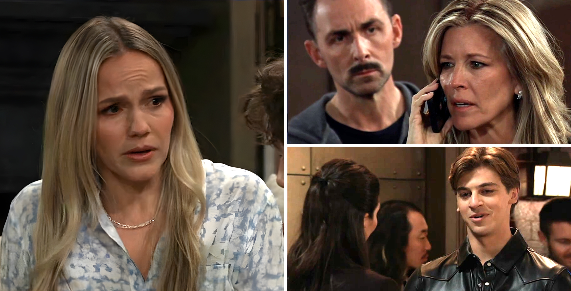 And Carly’s (Laura Wright) on the phone with Valentin (James Patrick Stuart) beside her as she asks someone, “What’s wrong?” It’s probably due to the accident because Carly will leap into action. If Charlotte is indeed involved, Valentin will likely tag along, risking everything to make sure she’s okay.