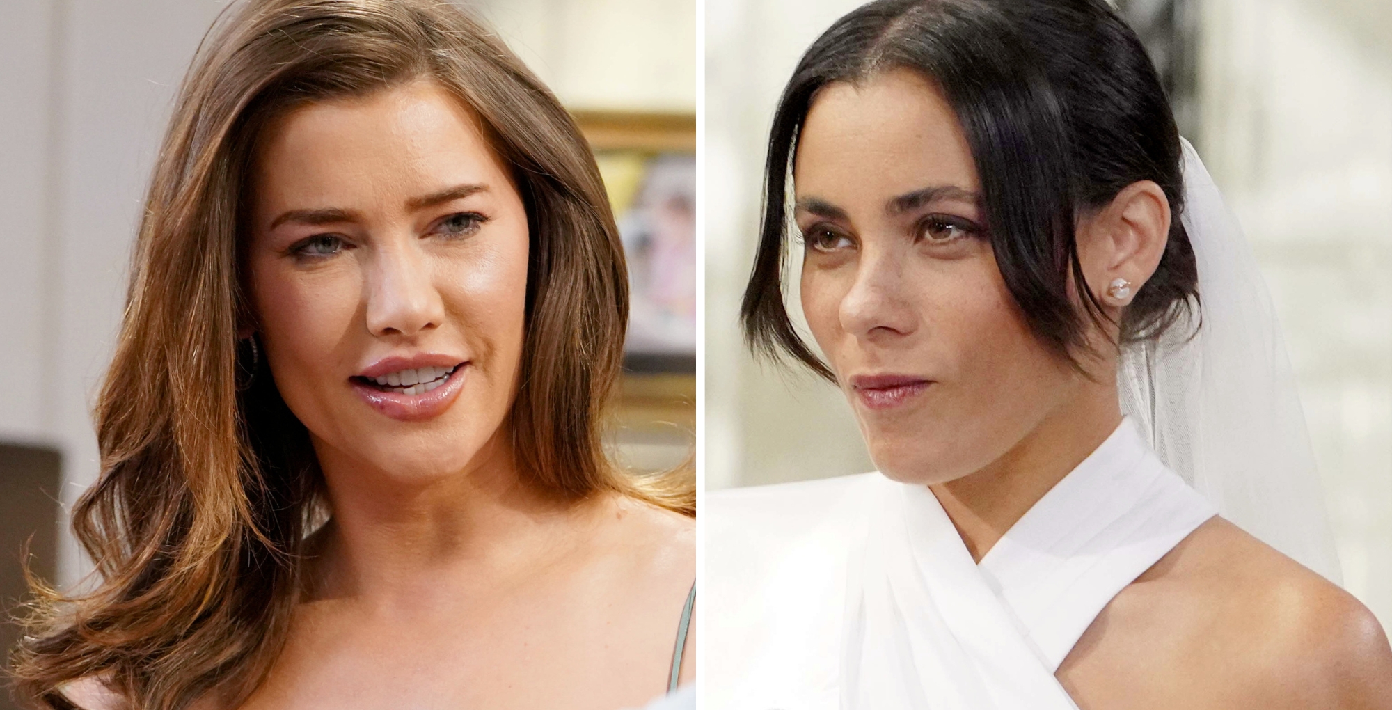At the Cliff House, Steffy (Jacqueline MacInnes Wood) threw a surprise bridal shower for Daphne Rose (Murielle Hilaire), who was already dressed in white. That’s because she’s in a rush to marry Carter (Lawrence Saint-Victor).