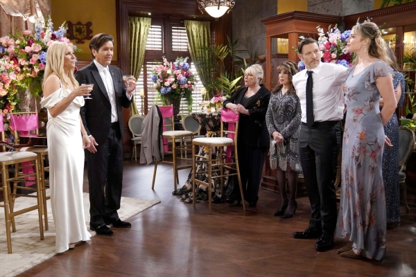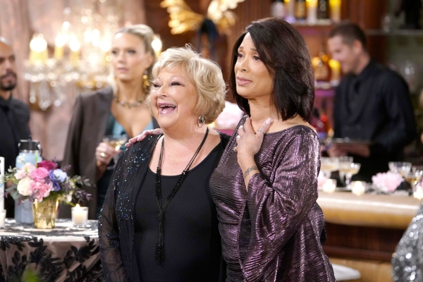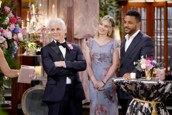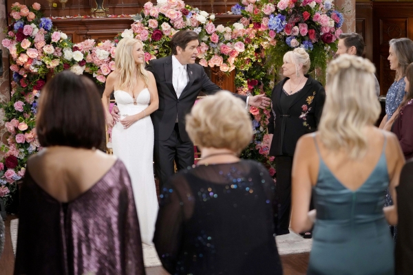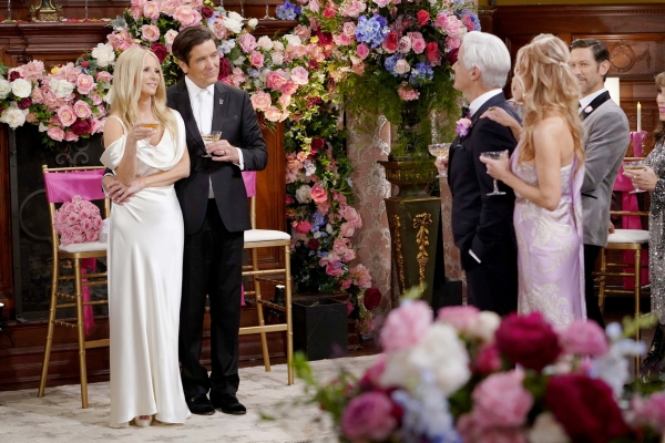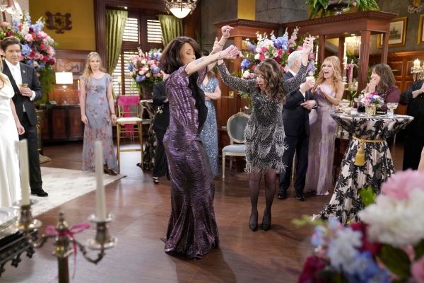 It appears that the guests are having a great time at the wedding and the subsequent reception. Longtime friends Tracy (Beth Maitland) and Amy (Valarie Pettiford) are in attendance. Amy and Esther will apparently set the tone on the dance floor. Devon (Bryton James) and Abby (Melissa Ordway) will also hit the dance floor. Look for Danny and Nate (Sean Dominic) to chat as well.