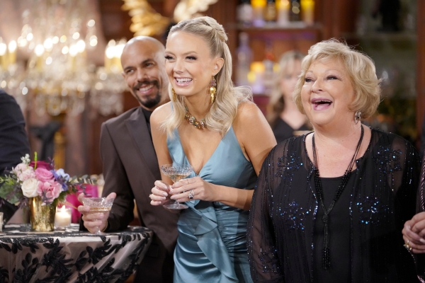 Phyllis is holding a glass of champagne. And so it appears as if she will toast Danny and Cricket, aka, The Bug. Will she surprise everyone with what she is about to say? She just might. After all, she is in somewhat of a good place right now. She and Cane (Billy Flynn) just connected on a whole new level. And if Victor (Eric Braeden) can just get with it and unleash the AI software superweapon on Jabot, then she can become the company’s new visionary leader, right?