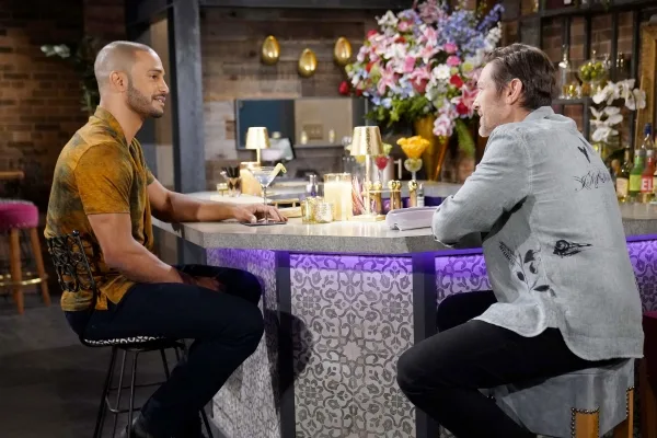 Meanwhile, this one-off photo features Holden (Nathan Owens) and Daniel (Michael Graziadei) sharing space, maybe even a drink. However, in Y&R’s weekly video preview, there is some tension between the two, and Holden at one point asks Daniel if Cane (Billy Flynn) put him up to this. What does that mean?