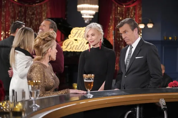 They’ll make their rounds through the room checking in with with Abby (Melissa Ordway) and Devon (Bryton James) before Jack takes off for a shady looking talk with Adam (Mark Grossman), and Diane shares a moment with Esther (Kate Linder).
