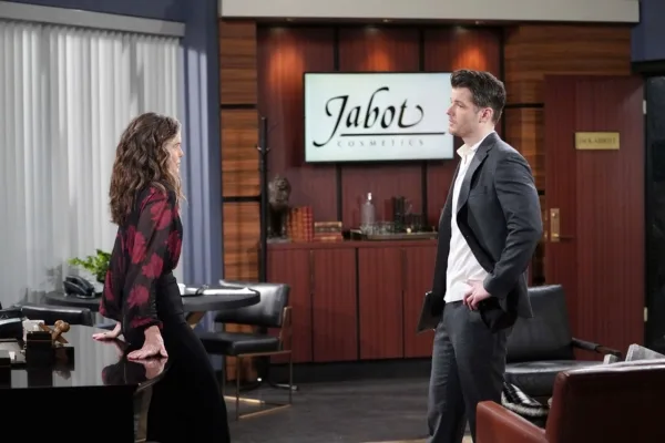 In the coming episode, Diane and Kyle (Michael Mealor) take to the Jabot office to talk about all the goings-on and share all the hot gossip. We have to say, it’s kind of nice seeing all these big smirks in the snap shots because evil grins mean more chaos to come.