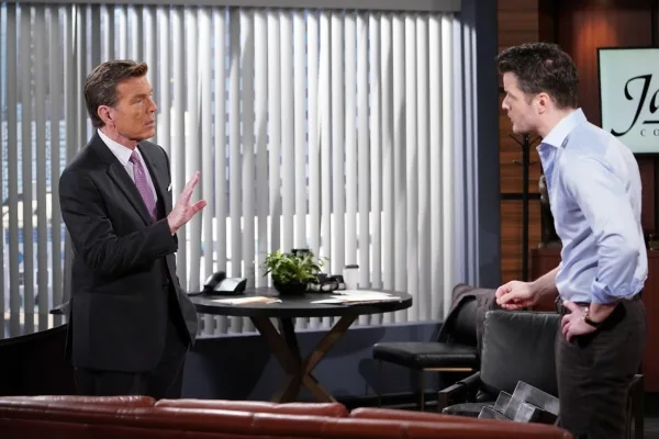 While Claire seeks solace with Nikki, Kyle hits up the office to fume with his father. And, not just about what’s going on with Claire. The Mustache is not just attacking his relationship, he’s once again attacking their family company. Things at Jabot are getting messy and the Abbotts need to keep a handle on everything before it all falls apart.